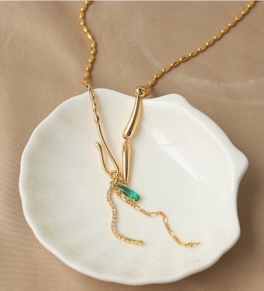 Emerald Crystal Tassels Gold Beaded Necklace