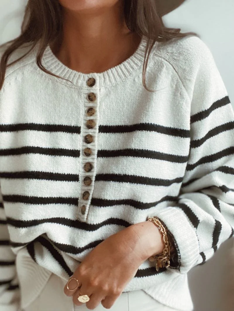 Faux Button Striped Sweater