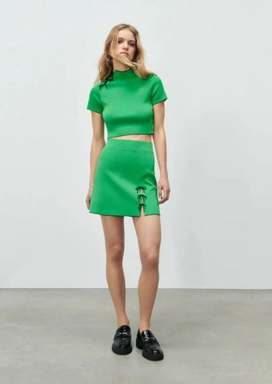 Green Mini Slit Ribbon Skirt