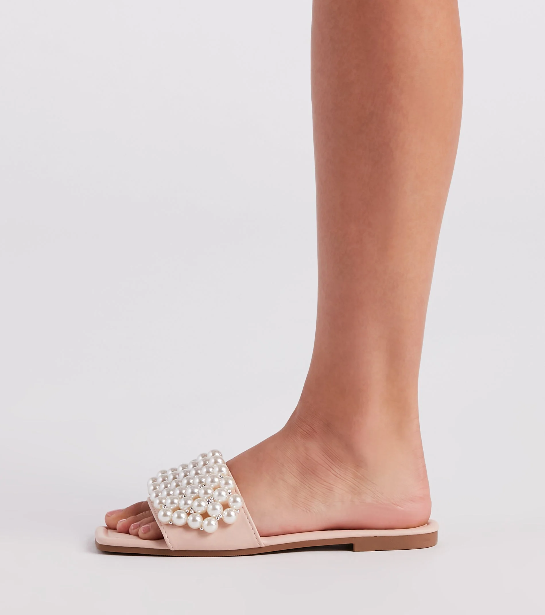 -65%Hidden Treasure Faux Pearl Slide Sandals—