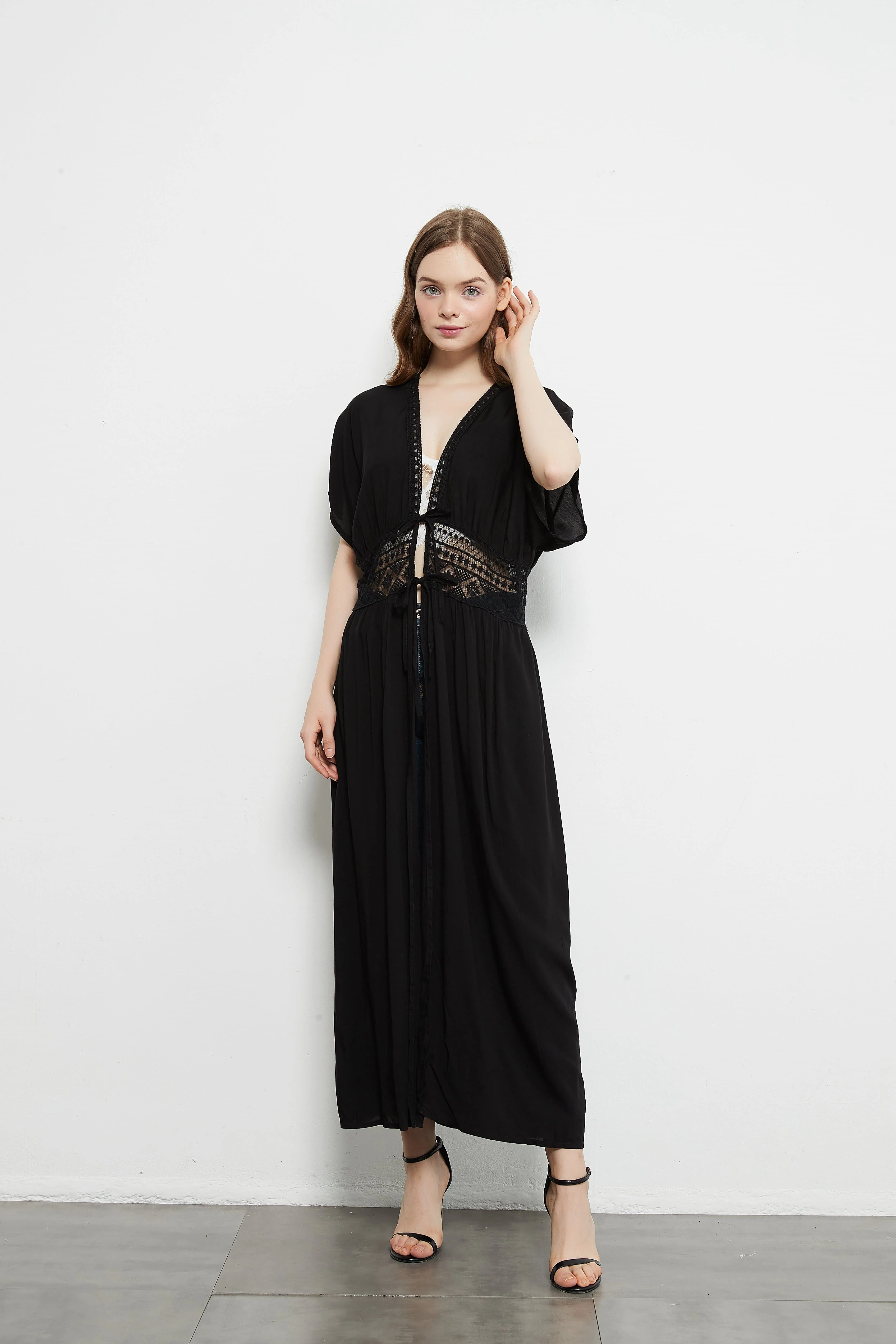 Keep it cool with this short sleeve. embroidered kimono. The base is made of a warm-toned. linen-likematerial. Style over shorts and a tee for an elevated. everyday look.