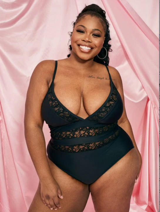 Plus Plunge Floral Lace Lined One-Piece
