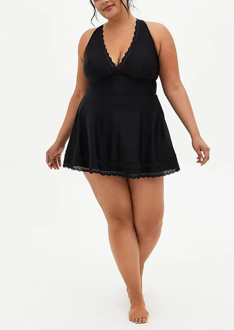 Plus Ruffled Lace Trim Plunge One-Piece Dress